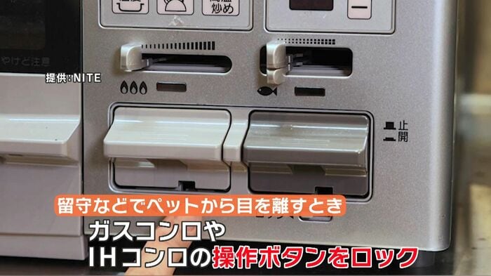NITEは、留守の時など、飼い主がペットから目を離す際、ガスコンロやIHコンロの、操作ボタンをロックすることや、使用しない電化製品はプラグを抜くなど、対策を呼びかけています。