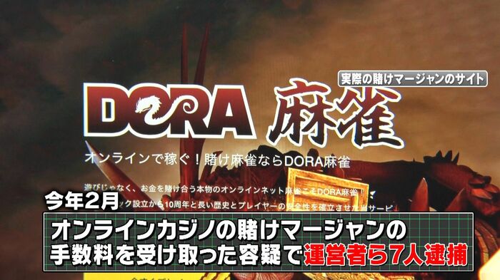 2024年2月には、オンラインカジノの賭けマージャンの手数料を受け取った疑いで、サイトの運営者ら7人を逮捕。会員は約7万4000人にのぼり、約23億円を集めたとみられています。