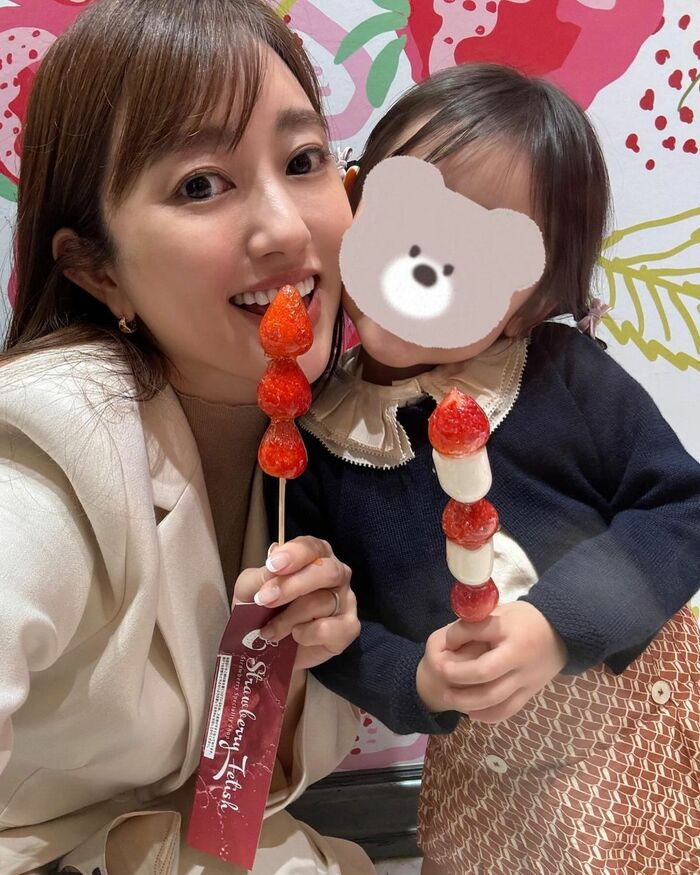 また、菊地さんと娘でいちご飴を持ち仲良く寄り添うショットも公開。
