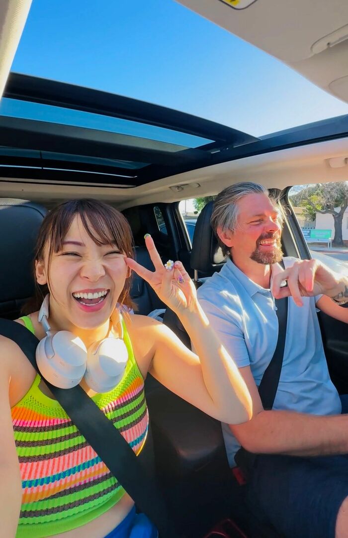 投稿された写真は、車のサンルーフからのぞく青空の下ピースをする開放感たっぷりのショットや、ヘッドホンを首にかけてスケートボードに挑戦する姿など、アメリカ生活を満喫する様子が収められています。