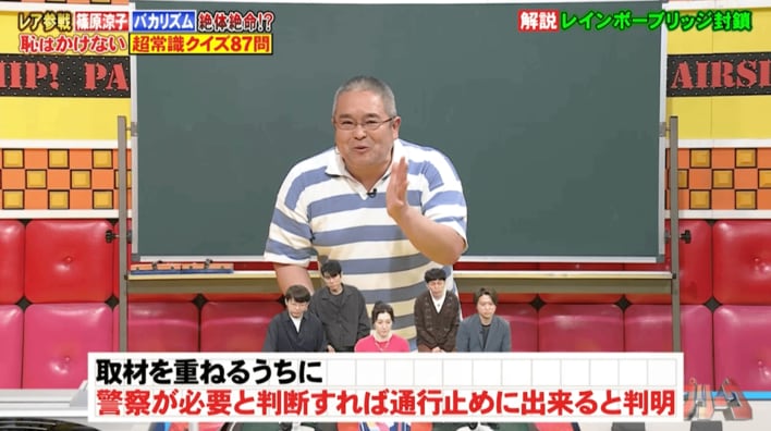都内の観光名所の写真を見て名前を答える問題では、出題された「レインボーブリッジ」について、地理担当の村瀬哲史先生が解説を加えました。