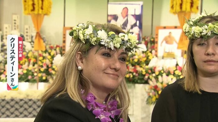 今回の葬儀では、ご家族は曙さんの故郷・ハワイの「レイ」を身につけていました。
