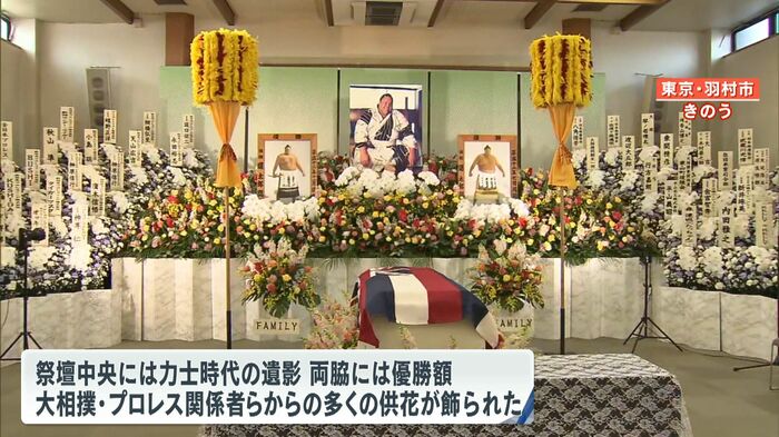 14日、都内の斎場で葬儀・告別式がしめやかに営まれ、大相撲関係者やプロレス関係者など多くの人が参列し、最後の別れを惜しみました。