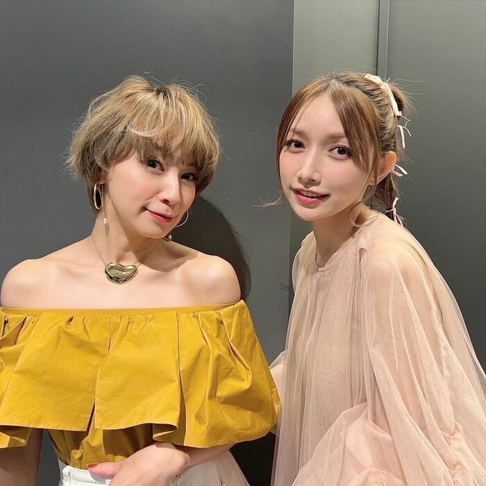 また、マスタードイエローのオフショルトップスで美しいデコルテをみせる鈴木さんとの2ショット写真も公開。