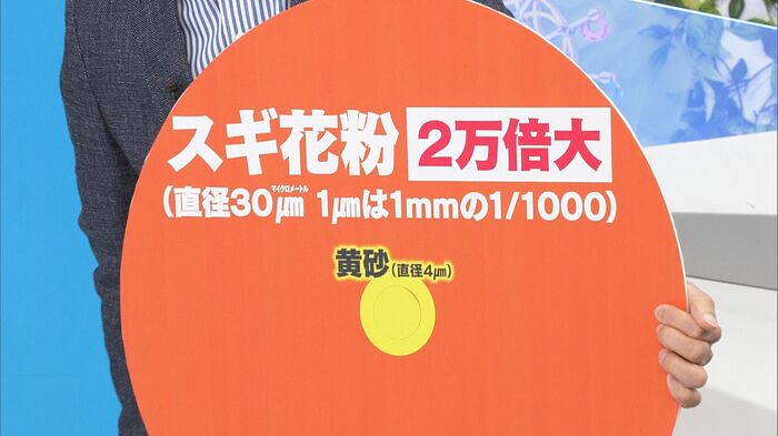 スギ花粉とくらべると黄砂はかなり小さいんです。直径が4マイクロメートルですから、1つ1つの粒はこんなに小さくて。