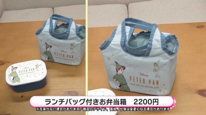 爽やかなブルーにピーター・パンが描かれ、バッグと同じ絵柄のお弁当箱がセットの『ランチバッグ付きお弁当箱(2200円)』。