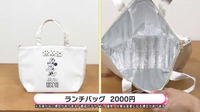『ディズニーストア』ではミニーマウスがデザインされた、白が基調で大人っぽい保冷仕様の『ランチバッグ(2000円)』や・・・。