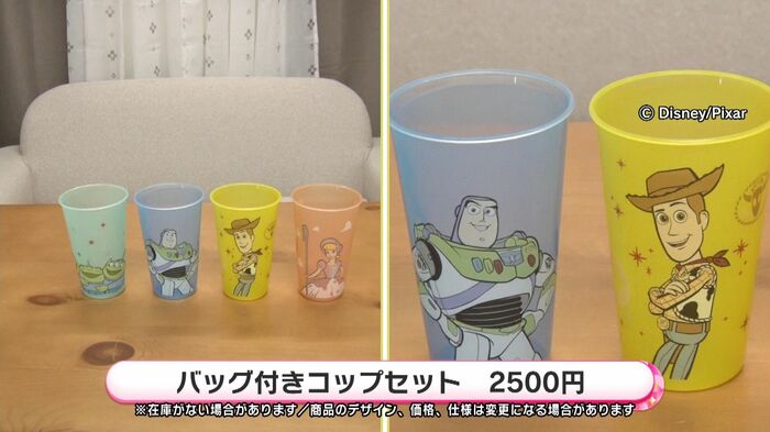 さらに、トイ・ストーリーの『バッグ付きコップセット(2500円)』は、ウッディなどが描かれ、キャラクターごとに色が違うのもポイントです!