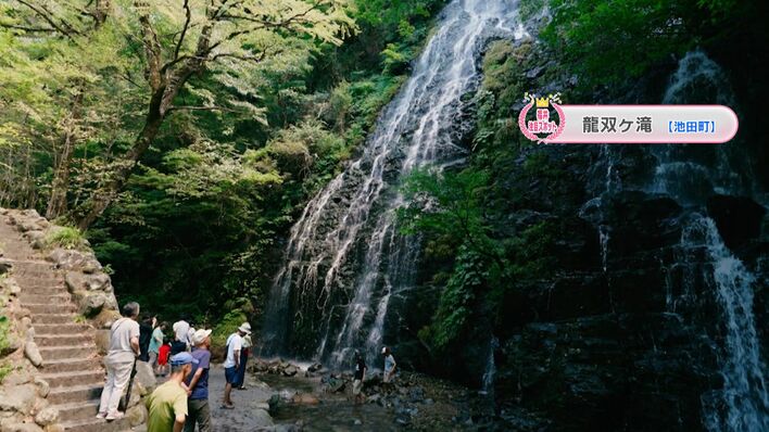 「日本の滝100選」にも選ばれている高さ60メートルの滝『龍双ヶ滝』。