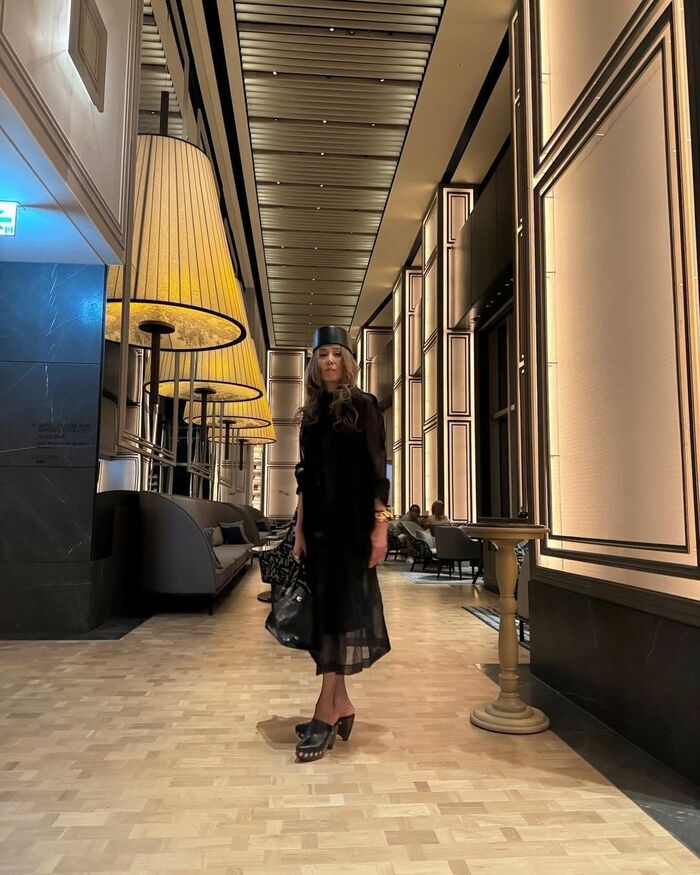 萬田さんは「久しぶりの夜の西麻布」というコメントともに、2024年3月に麻布台ヒルズにオープンしたラグジュアリーホテル『ジャヌ東京』で撮った写真を投稿。帽子から靴まで黒で統一したシックな全身ショットを公開しました。
