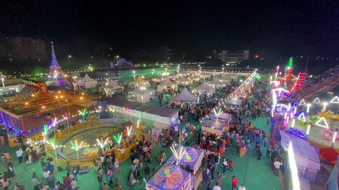 「インドの移動式遊園地。日本と価値観が違いすぎます」という謎レビューを確かめるべく、早速行ってみると、とんでもない人だかりが。