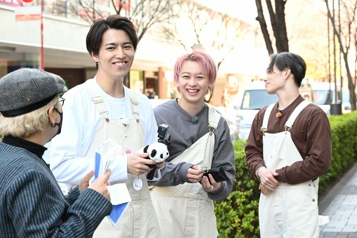 5月13日の放送は「三つ巴(どもえ)!わらしべバトル!」の後半戦。日本の昔話『わらしべ長者』に例えて、超特急が3人1組の3チームに分かれて街中で物々交換にチャレンジ!バトル終了時点で最終的に交換できたモノを鑑定士の森園高行さんが査定し、もっとも高価なアイテムを持つチームが優勝となります。