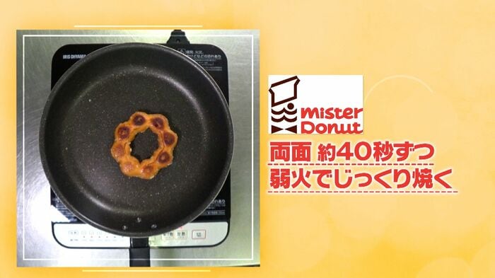 「ミスタードーナツ」によると、「両面、約40秒ずつ弱火でじっくり焼く」とよりおいしくなるとのことです。