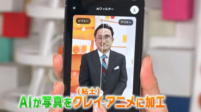 街でインタビューすると「(写真が)普通じゃないから面白い」「なかなかない加工になって、いい味が出る」「“ひつじのショーン”みたいになる」との意見を集めた、粘土加工アプリ「Remini」。