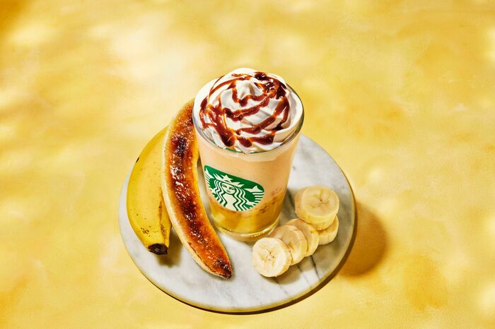 スターバックス コーヒー ジャパンは2024年5月29日から期間限定で完熟バナナのおいしさと焦がし砂糖のビターな甘さが楽しめる「バナナ ブリュレ フラペチーノ」と、奥深いバナナの甘みと米粉のもっちり食感が重なる2種のデザートを販売することを発表しました。