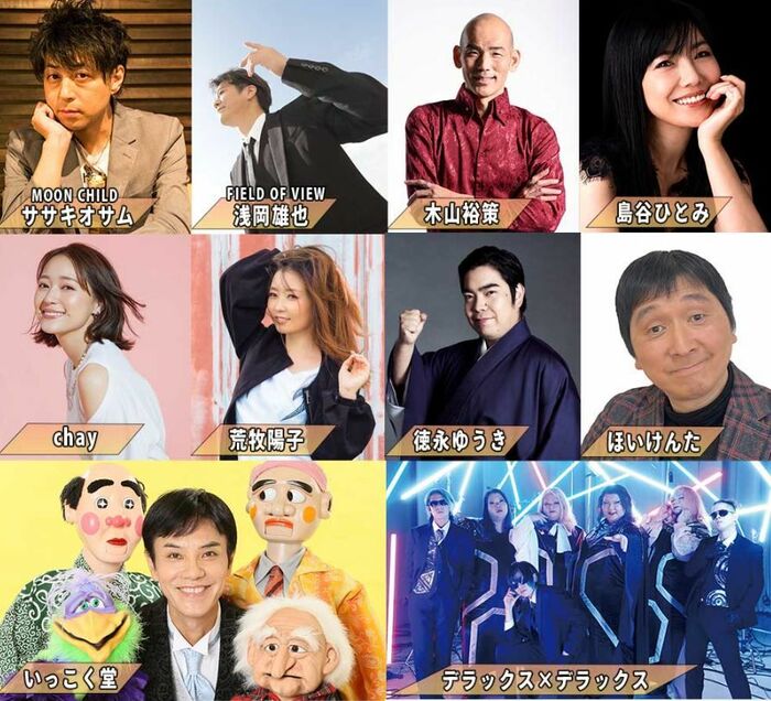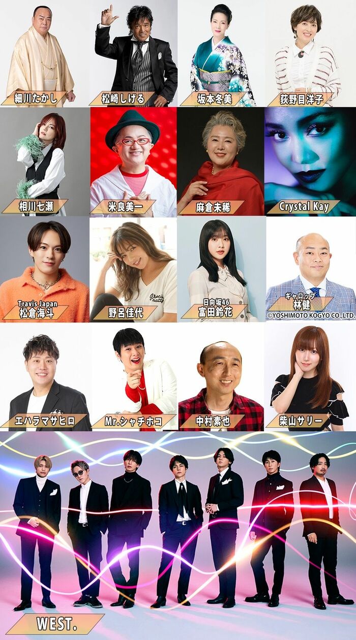 軽部真一、井上清華(ともにフジテレビアナウンサー)が司会進行を務め、千鳥(大悟さん、ノブさん)とかまいたち(山内健司さん、濱家隆一さん)が見守るなか、豪華絢爛(けんらん)かつ予測不能な音楽ショーが開幕します。