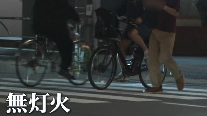 日が暮れると、多く見られたのが無灯火で走行する自転車。
