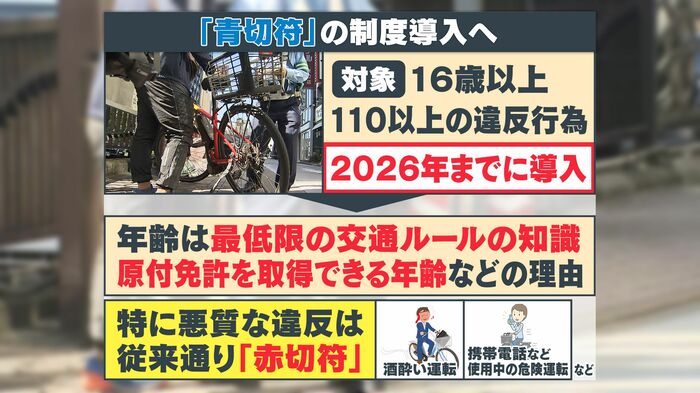 2024年5月17日、自転車の交通違反に反則金を求める「青切符」制度の導入が決定。