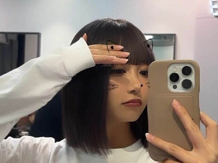 れいたぴさんは、「かなりのイメチェン黒髪パッツンボブ」と題した投稿で、ショートカットにしたことを報告しました。