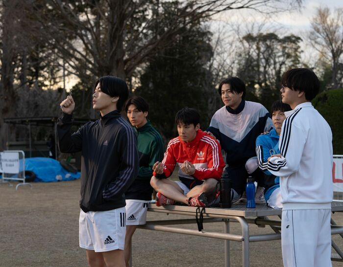 ⾼校時代、陸上部の良きライバルとして⻘春を共にしてきた、橘⼤和(川⻄拓実)、⼤澤瑛次郎(中島颯太)、伊⾹賢(⽊全翔也)、北村勇吾(⾦城碧海)、⻄園寺陸(瀬⼝黎弥)、寺島譲司(佐藤⼤樹)ら6⼈の⻘年たち。