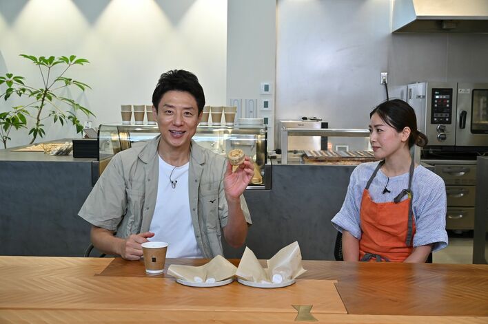 続いて、「ラムレーズンカスタードのおやき」をほお張った松岡さんは、「油断してた、おやきが甘いです。初めての感覚」と驚きを伝え、「中のラムレーズンとカスタードが本当に上品」と絶賛。おやきを食べてからコーヒーを飲み、力強く「すっごいおいしい!」とひとこと。