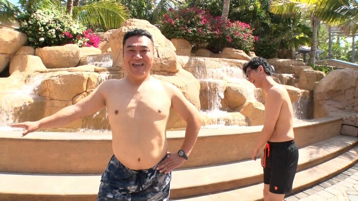 世界一広いプールで大はしゃぎのアンタッチャブルを見た、宮近さんは「高校生みたい!めちゃくちゃ楽しそう」とおじさん2人の仲良しっぷりに大笑い。