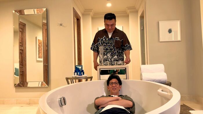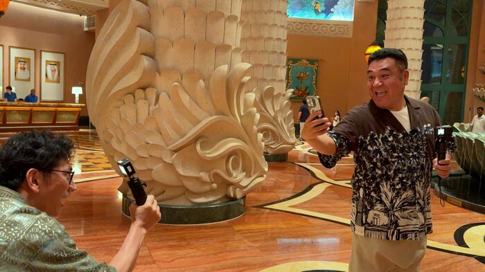 さらに、旅の最終目的地・超高級五つ星ホテル「アトランティス・ザ・パーム」の中にある、東京ドーム4.8個分の広さをほこる“世界一広いプール”へ。