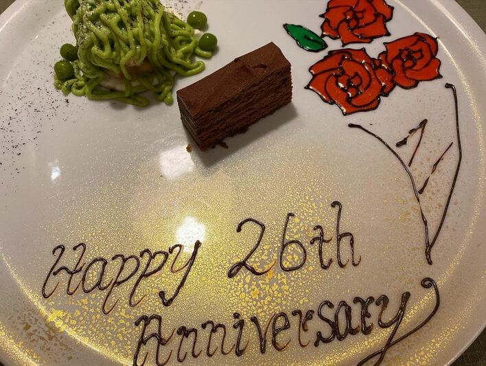別の写真には、結婚26周年をお祝いするデザートのプレートも!