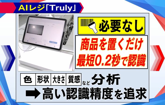 まずは、商品を置くだけで最短0.2秒で認識。会計ができるAIレジ「Truly(トゥルーリー)」です。