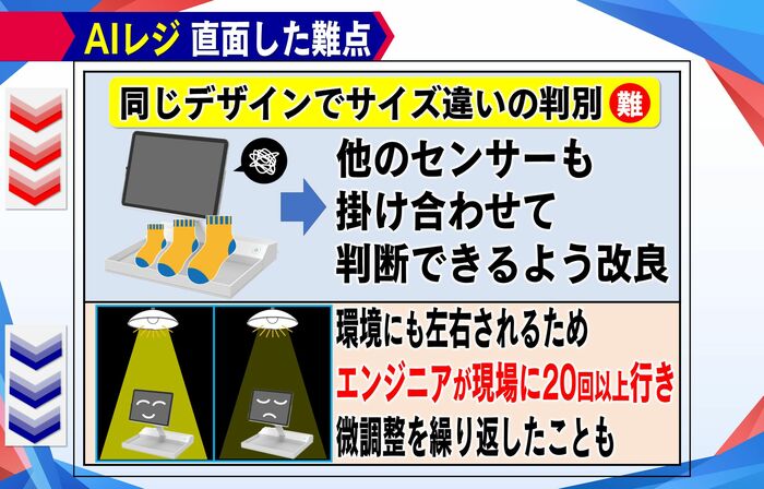 ただ一方で、同じデザインでサイズ違いのものの判別は難しく、現在は他のセンサーも掛け合わせて判断できるように改良しています。