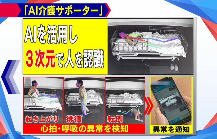 続いての最新技術は、高齢者介護施設などですでに導入されている「AI介護サポーター」です。