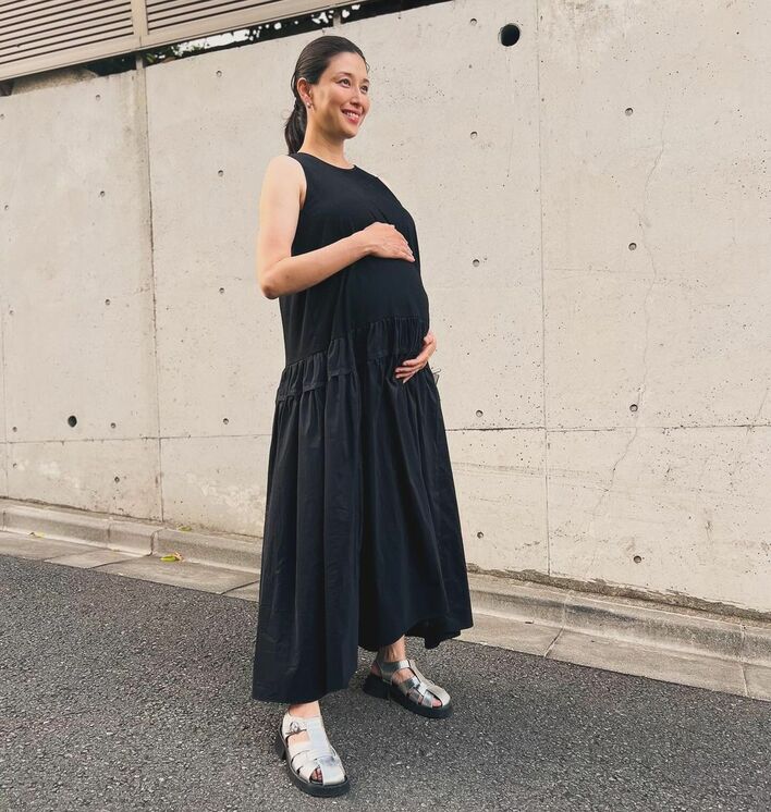 第2子妊娠中の橋本さんは、今回の投稿で、黒のノースリーブワンピースを着て、お腹がかなりふっくらしているのが分かる写真を公開。