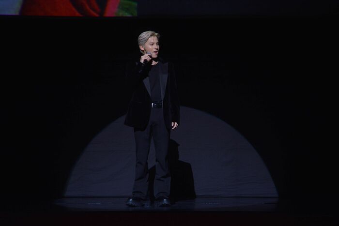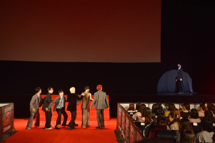 会場となった「TOKYO DOME CITY HALL」のステージに登壇した6人。ステージから会場に敷き詰められたレッドカーペットに降り、満員の観客に向けてファンサービスをしていると、そこにハンターが登場!