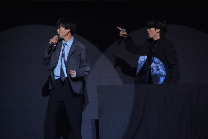 一目散にハンターから逃走し、華麗にハンターをまいて会場から退場した6人は、それぞれ順番に客席やステージから現れて「ハンターを知りませんか?」「逃げろ!」などの臨場感ある言葉を交えながら自己紹介を。物語に引き込まれるようなスリル溢れる演出に会場は大盛り上がり。