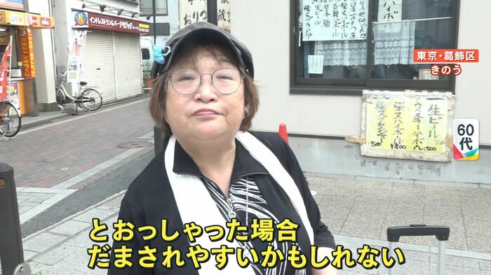 (以前)私、詐欺にあったの。150万持ってかれたんだよ。私は銀行員だから、安心してくださいっていうから。でも、今話聞いたから、もうしない。考える。