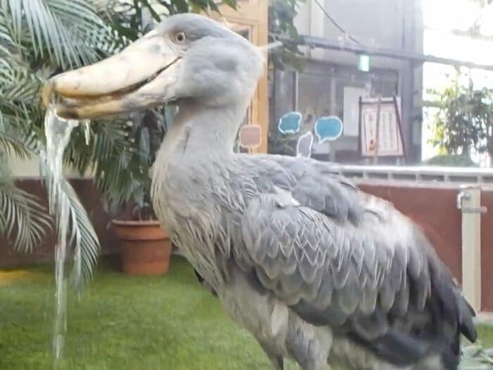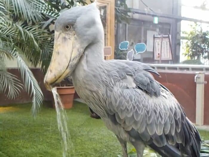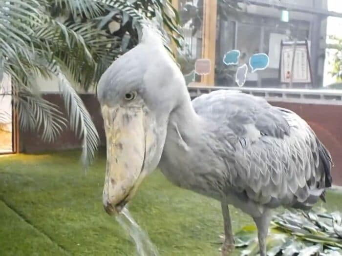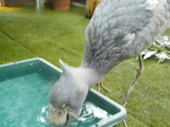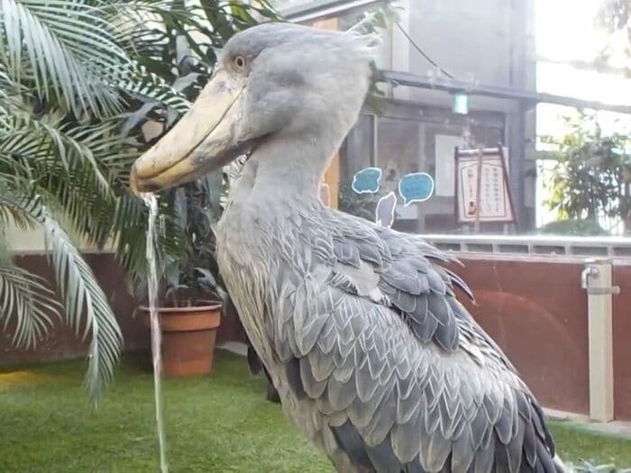 この「フドウ」の水飲み姿について担当者に話を聞いてみると、大量の水を口にふくむだけふくみ、少し飲んだら残りは吐き出すというのがハシビロコウの水飲みスタイルなんだとか。
