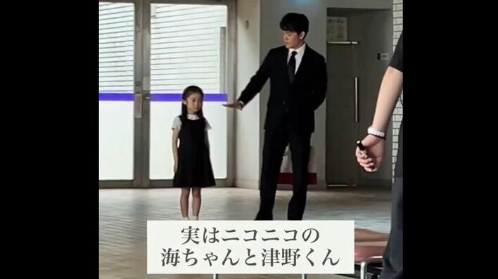 水季の葬儀という悲しみに包まれたシーンですが、本番直前、2人は手をつないだ瞬間に笑顔に。普段から仲が良い様子がうかがえます。