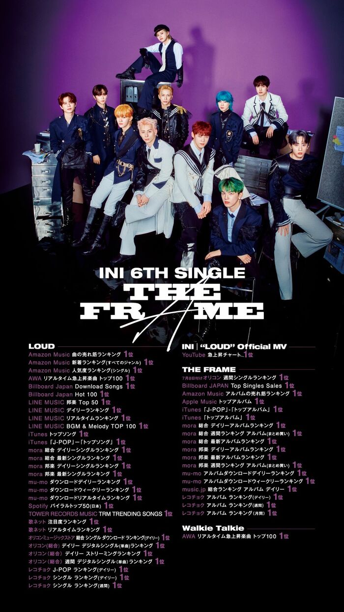 グローバルボーイズグループINIが6月26日(水)にリリースした6TH SINGLE『THE FRAME』が、「Billboard Japan Hot 100」や「オリコンデイリーストリーミングランキング」、「iTunes トップソング」をはじめ、各種⾳楽チャートで50冠を達成しました。