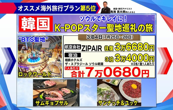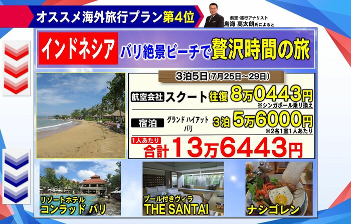 そんな鳥海氏がオススメする、「円安でも楽しめる海外旅行プランベスト5」!