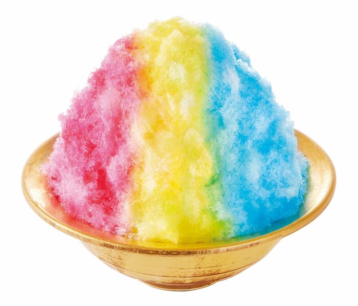 ブルーハワイ、レモン、いちごの3種のシロップが、ふわふわのかき氷を彩り、それぞれのシロップを個別で味わうのはもちろん、3種が混ざり合い味と色のレインボーな変化が楽しめます!ソフトクリームのトッピングも相性抜群です。