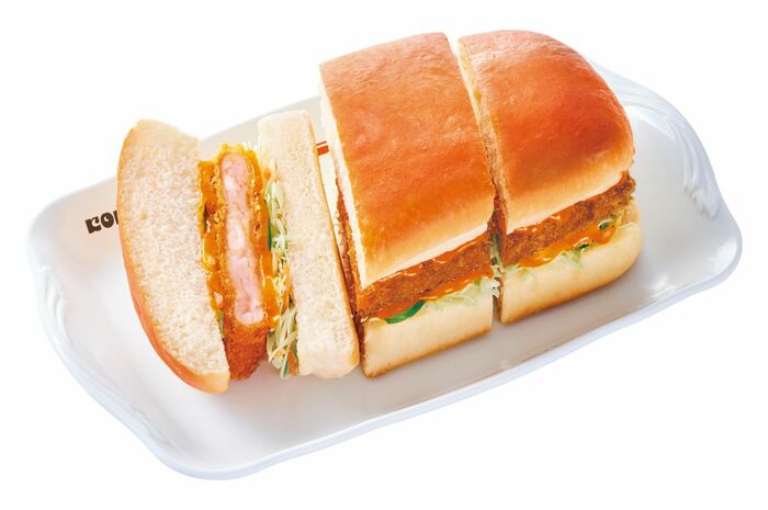 ぷりぷりのエビの食感が楽しめるエビカツを、フレッシュな千切りキャベツ、オニオンスライスと合わせ、特製のガーリックシュリンプソースと一緒にカツパン専用のパンで挟みました。