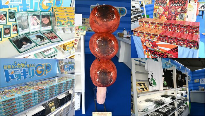 また、大人気の「マッサマンのマッサマンカレー」、クッキー、Tシャツ、ノート、ステッカーなどグッズも多数ラインナップ。なかでも、ドッキリの小道具「デカすぎるみたらし」を再現した巨大なクッション(77000円)はひと際目を引きます。昨年、2本が売れ、今年は残り8本とのこと。興味のある方はぜひ!