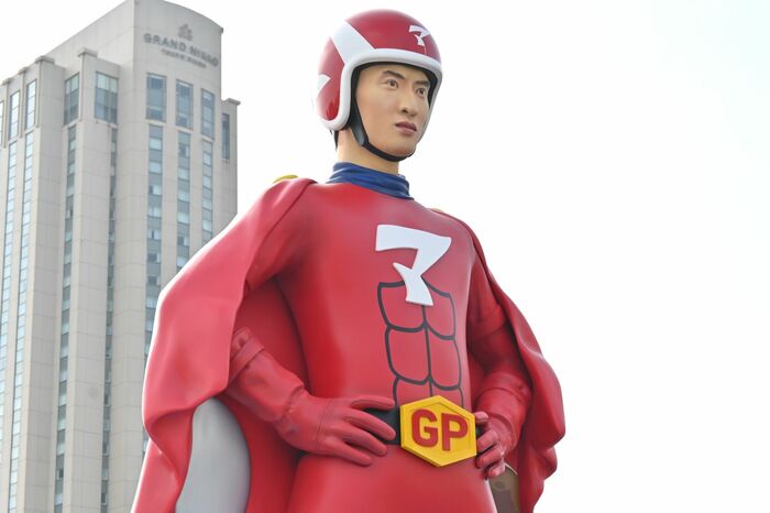 この像は、マッサマン(向井康二さん)には「(マッサマンのコーナーの)オープニングを撮ります」と言って360度撮影し、約半年をかけて制作されたそう。堂々とした立ち姿が印象的なマッサマンとの記念撮影は必須。夜は22時までライトアップもされます。