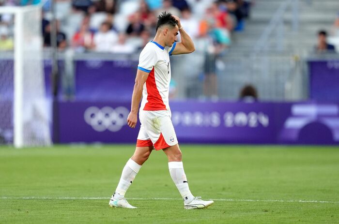 Photo by Juan Manuel Serrano Arce/Getty Images 平河選手の足を踏みつけパラグアイ・ビエラ選手が一発退場