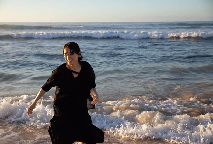 また、黒のワンピース姿で、浜辺を歩く様子も公開されています。