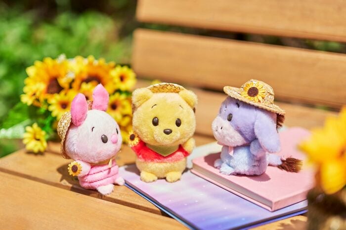 大人気シリーズ「うるぽちゃちゃん」からは、麦わら帽子をかぶったプーさんとピグレット、イーヨーのぬいぐるみが登場!