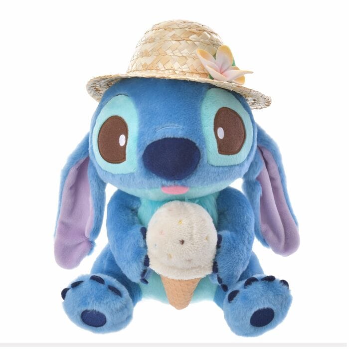 また、同じく麦わら帽子をかぶったスティッチは、真っ白いアイスを今にも食べようとしているような顔に!