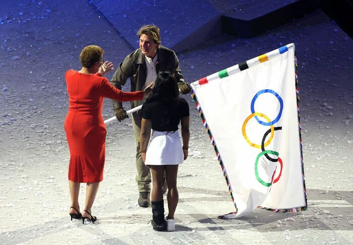 オリンピック旗はトム・クルーズさんからロサンゼルスにいるアスリートたちに渡され、オリンピックはパリからロサンゼルスへと引き継がれました。
