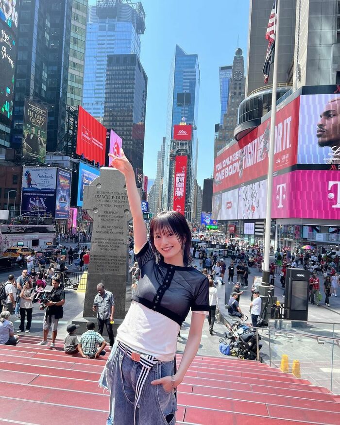 タイムズ・スクエアで笑顔でポーズを決める姿などが公開されています。