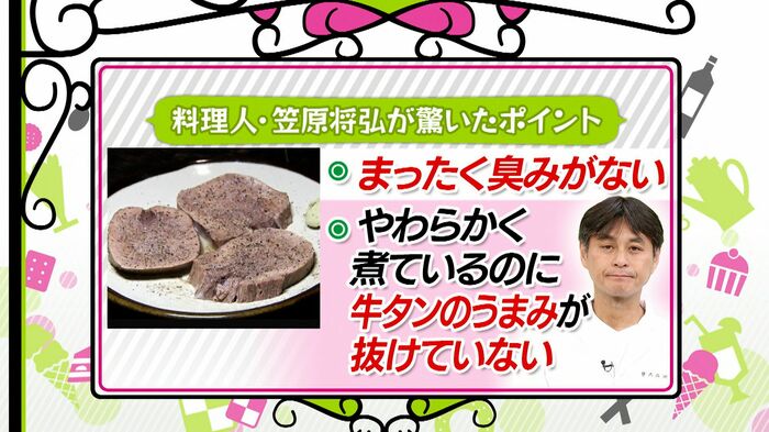 「ゆでたん」の驚いたポイントとして「まったく臭みがない」「やわらかく煮ているのに牛タンのうまみが抜けていない」ことを挙げました。